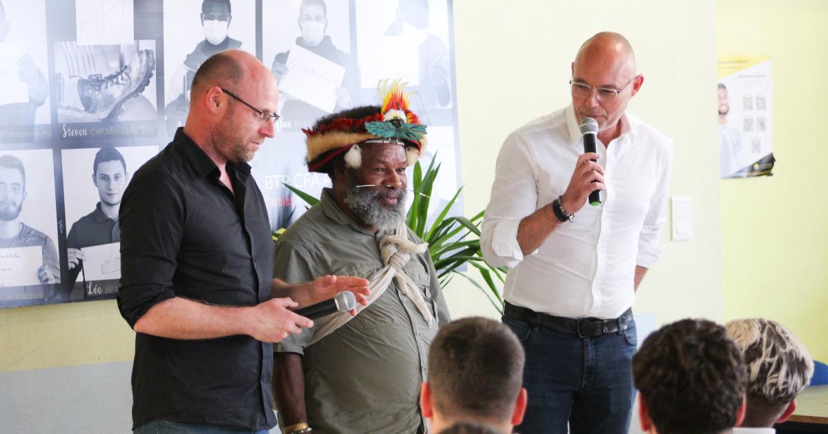 L'authentique chef de tribu de Papouasie-Nouvelle Guinée est venu à la rencontre des apprentis, pour les sensibiliser à l’importance de la protection de notre environnement.