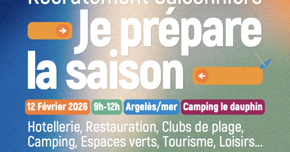 Nous serons au Forum Saisonnier Argelès – HPA & Tourisme, organisé par la MLJ FT et Cap Emploi, au camping Le Dauphin à Argelès-sur-Mer.