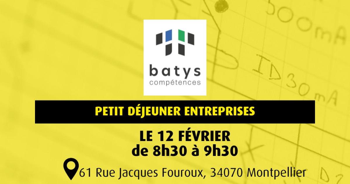 Le jeudi 12 février, de 8h30 à 9h30, nos équipes auront le plaisir de participer au Petit-Déjeuner Entreprise organisé par Batys Compétences.